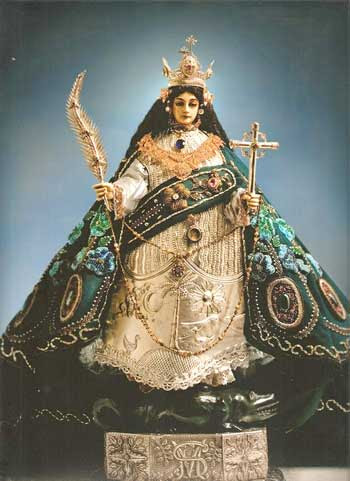 People of Pateros attribute this miracle to their patron saint and a grand fluvial procession is traditionally held in memory of the miracle. Thus her image shows crushing a crocodile with her dainty feet.